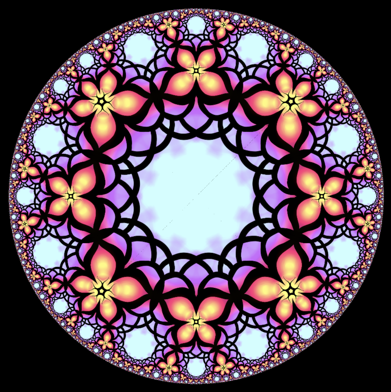 The collection of animations you find here refers to our methods for creating Escher style circle limit patterns from Euclidean ornaments. They offe a playground explaining the basics of the algorithm giving experiments of the artistic outcomes. (This collection is work in progress). |